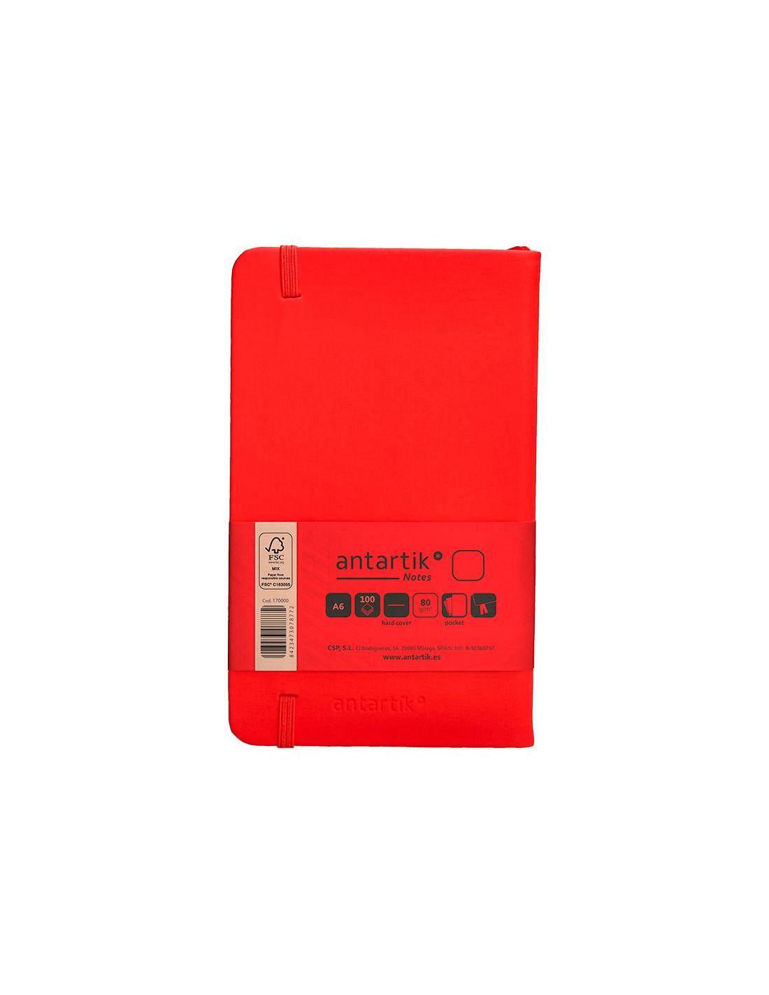 Cuaderno Con Gomilla Antartik Notes Tapa Dura A6 Hojas Lisas Rojo 100 Hojas 80 Gr Fsc